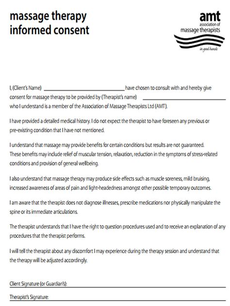 Massage Therapy Consent Form Printable Consent Form
