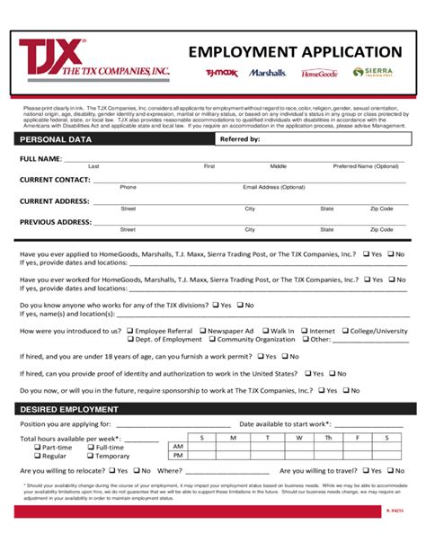 T.J.Maxx Application Form Edit, Fill, Sign Online Handypdf