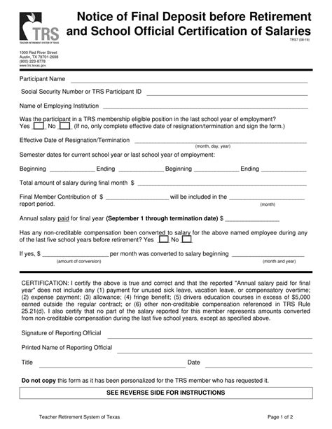 Web • submit the form trs 7 only after the correct final earned salary is confirmed. • do not submit this form any earlier than the. Web • submit the form trs 7 only after the correct final earned salary is confirmed. Web the trs 7 form will now be completed through the retirement certification and the trs 8 form will now be completed through. Web 1/6/2023 5:43:29 pm.