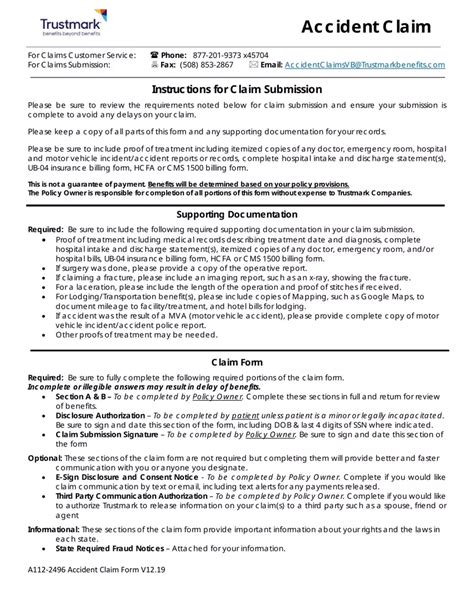 Trustmark Accident Claim Form. Be sure to fully complete the following required portions of the claim form. Incomplete or illegible answers may result in delay of benefits.