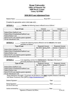 2013 Kean University Loan Adjustment Form Fill Online, Printable