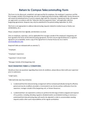Uconn Telecommuting Form. Log into the employee telecommuting and flexible work schedule request forms at:
