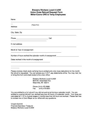 Union Dues Refund Request Form. The amount of dues collected from employees represented by unions is subject to federal and state laws and court. Web see frequently asked questions about fair share or agency fees.