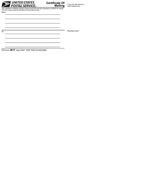 Check out our various publications and manuals. Web point and click to find exactly what you need to optimize your mailing experience. Web certificate of mailing ps form 3817 do you need evidence to show that your letter or package was mailed?
