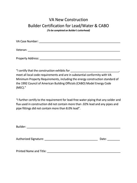 Va Builder Certification Form. Web builder information and certification on builder's letterhead;