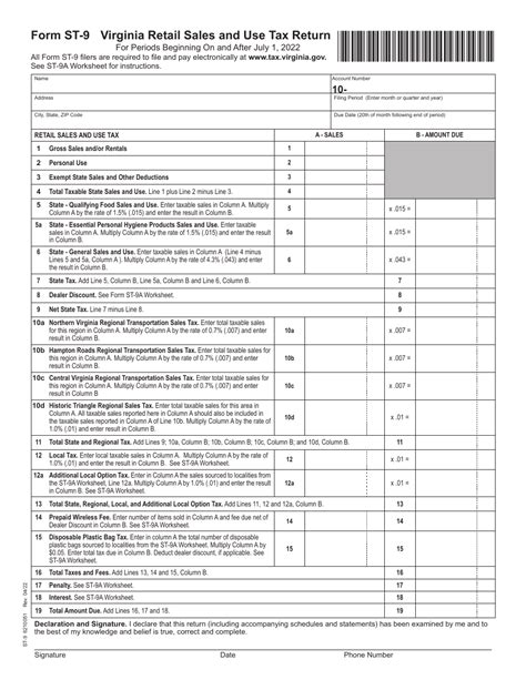 Va St9 Form. Gross sales and/or rentals 2. Exempt sales and other deductions 4.