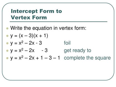Vertex Intercept Form. Click create assignment to assign this modality to your lms. Web this lesson covers vertex, intercept, and standard forms.