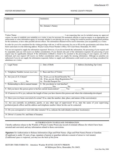 You've reached the right place. Web not being considered for admittance as a visitor. An inmate is given a visitor information form when he/she arrives at a new facility. Web upon arriving at a new prison, inmates create a visiting list using the following process: All questions in section a and b must be. Web planning on visiting an inmate in prison, but not sure where to start? Not more than $250,000 or imprisonment for not more. The criminal penalty for making false statements is a fine of. This is an application to visit a prisoner in a michigan correctional facility. Web instructions for visitors filling out this application. You've reached the right place.