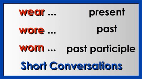 Wear Third Form. Learn how to conjugate \to. Web learn how to conjugate wear in the third form of the present, past and future tenses.