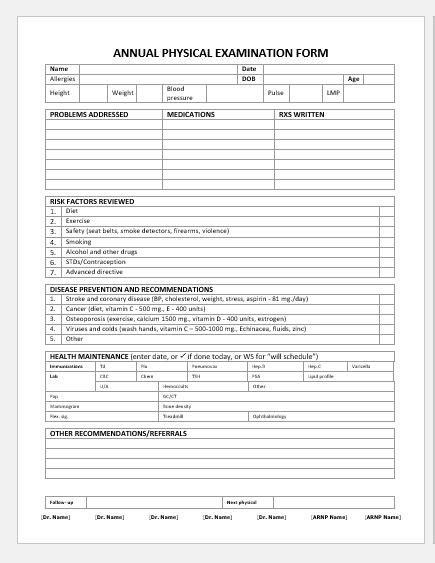 8+ Yearly Physical Form Templates PDF