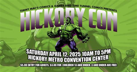 Hickory Comic Con 2022. $5.00 adults / $3.00 13 &. In partnership with time tunnel comics, hickory parks, recreation & sports tourism.