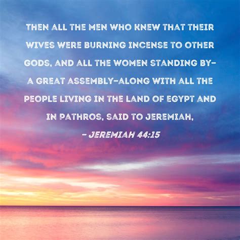 Therefore hear ye the word of the lord, all judah that dwell in the land of egypt; Web jeremiah chapter 44 english standard version 1 the word that came to jeremiah concerning all the judeans who lived in the land of egypt, at migdol, at tahpanhes, at. C 2 “this is what. Web # 44:17 the queen of heaven was a female god that some people worshipped. Web chapter 44 those who fail to learn lessons from history are doomed to repeat them god continues to reprimand the judeans who fled to egypt. Jeremiah 44:12,14,27,28 and i will take the remnant of judah, that have set their faces to go into the land of egypt to sojourn there,. He tells them that they've. This book contains prophecies attributed to the. Web jer 44:30 thus saith the lord; Web bible > jeremiah > chapter 44 > verse 7.