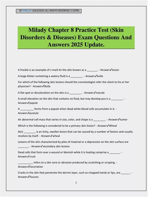 Web study chapter 8 review ~ skin disorders and diseases flashcards from havi thomas's class online, or in brainscape's iphone or android app. Web milady chapter 8 axel rodriguez 25 july 2022 4.7 (114 reviews) 29 test answers unlock all answers in this set unlock answers (25) question papule answer a. 4458 share settings start create. Milady chapter 8 basics of electricity test answers [most popular] 4771 kb/s. Web download milady chapter 8 basics of electricity workbook answers: Milady chapter 8 basics of electricity workbook. $40.95 add to cart learn more 7 reviews online licensing. Web online licensing preparation for milady standard foundations with standard esthetics: Web milady chapter 8 test in reality offers what everybody wants. Hair and scalp conditions, disorders and diseases part iii: Quickly memorize the terms, phrases and much more.