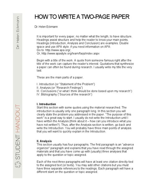 When choosing a topic for a 2 pages. A paper of 2 pages usually consists of 5 to 6 paragraphs. A thesis statement at the end of the introductory. A page header should appear at the top of each page of. If your instructor has given you a. Helen eckmann it is important for every paper, no matter what the length, to have structure.