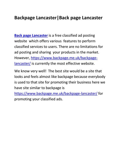Backpage Lancaster One click destinations by bedpage04 Issuu