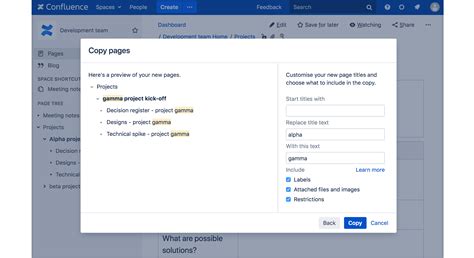 To copy a page and all its child. You can then rename the page and work in the editor like any ordinary page. Web cbork january 13, 2017, 1:54pm 2. Web confluence will open the copy of the page in the editor and name it 'copy of [original page title]'. To copy a page and all its child. You still go to the more actions ( ••• ). Rename the page, and make any other changes in the body of the page. Go to a page in the space, and click > copy. We didn’t change where this happens. Choose whether to include attached files and images. Confluence opens a copy of the page in the editor.