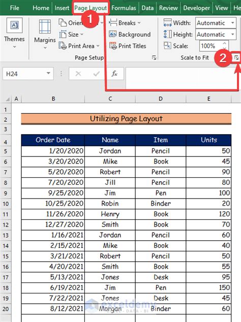 Fitting data to page in excel using page setup. Click the page layout tab on the ribbon. In the page setup dialog box, select the page tab. From the page layout tab, you will find the ‘ scale to fit ’. In the scale to fit group, in the width box, select 1 page, and in the height box, select automatic. Web applying vba code to fit to page in excel step 1:. Print to fit to one page using page setup dialog box this method stands out as the symbol of effectiveness and popularity in this field. At first, we will use the developer tab. Web how to fit to page in excel (print on one sheet) method 1: Web shrink a worksheet to fit on one page go to page layout > dialog box launcher on the bottom right.
