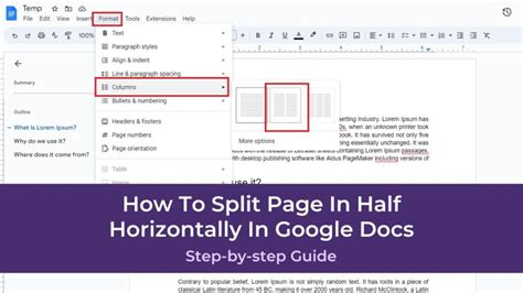 Select the page you want to split in half on your document. On the top menu, click “ format ” to access the formatting. Web splitting a google doc in half is a straightforward task. Click on the “insert” tab in the menu bar. Web here are the steps: If you want to split a particular page on your. Web how to split a page in half vertically in google docs (step by step) step 1: Open the google docs document you want to split click “format” in the top menu bar and select “columns” choose the number of columns you want (select “2” to split in half. First, open the google docs document that you’d like to format with two columns. Web steps for splitting a page horizontally open the google docs document that you want to split horizontally.