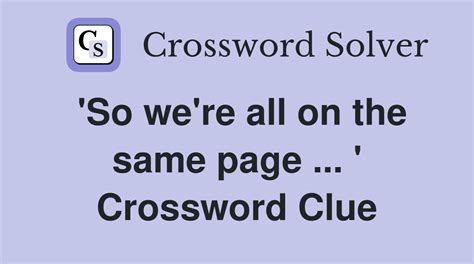 On The Same Page Crossword. On the same page crossword clue. Web while searching our database we found 1 possible solution for the: