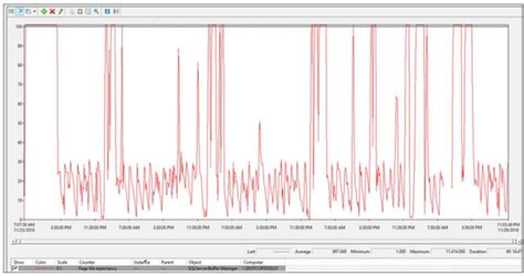 Page Life Expectancy. I have seen on busy system this value to be as low as even 45. Web page life expectancy goes up 1 for each second that you’re not under memory pressure.