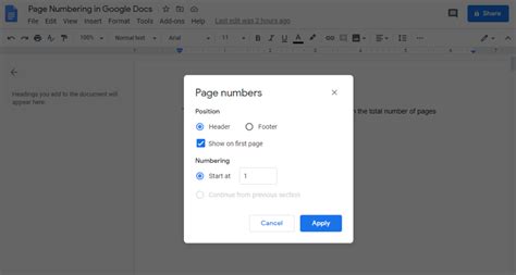 How to Start Page Numbering on Page 3 in Google Docs