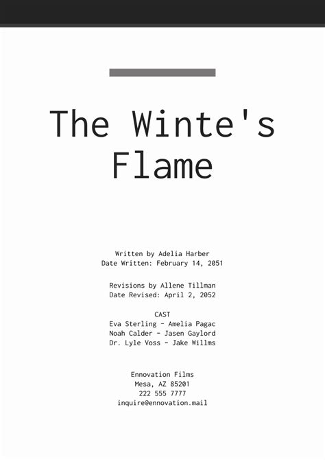 Screenplay Cover Page Example. Web jason hellerman mar 31, 2021 one of the most important aspects of getting your screenplay into the right hands is to have a title page that doesn't completely bump them from the start. That means a title page.