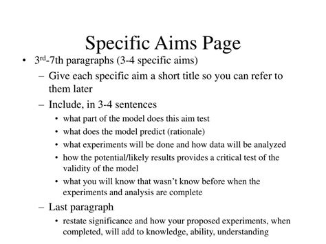 Specific Aims Page. Though this document is geared towards the r01. In this section, you must.