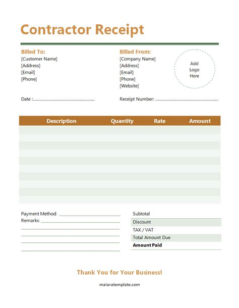 Contractor Receipt Template Receipt template, Business template, Word