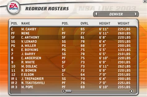 2004 Nuggets Roster. The 2004 denver nuggets roster for the nba regular season and playoffs.
