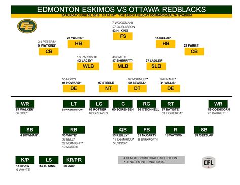 Depth Chart and Roster Edmonton Elks