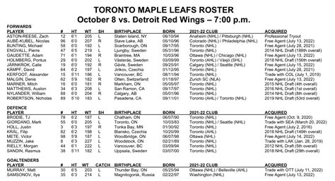 Maple Leafs Roster Tonight. Vote for your toronto maple leafs. Matthews to represent host maple leafs.