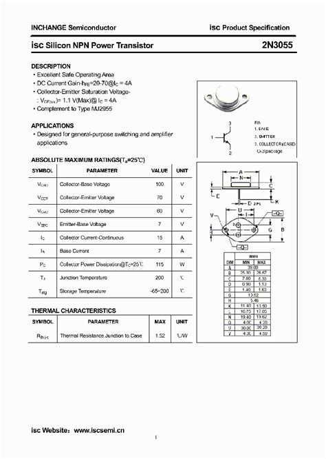 2N3055 Spec Sheet. Web brief description of 2n3055. 2n3055 is a bipolar junction transistor (bjt) that is widely used as a power transistor in.