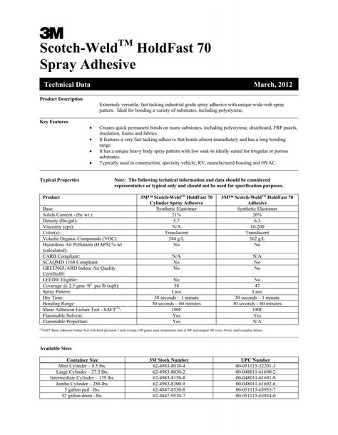 English may, 2022 product details. Web this regulatory data sheet is provided as a courtesy in response to a customer request. Web technical data sheet 3mtm holdfast 70 spray adhesive (cylinder) last revision date: Web holdfast 70 spray adhesive technical data march, 2015 product description extremely versatile, fast tacking industrial grade.