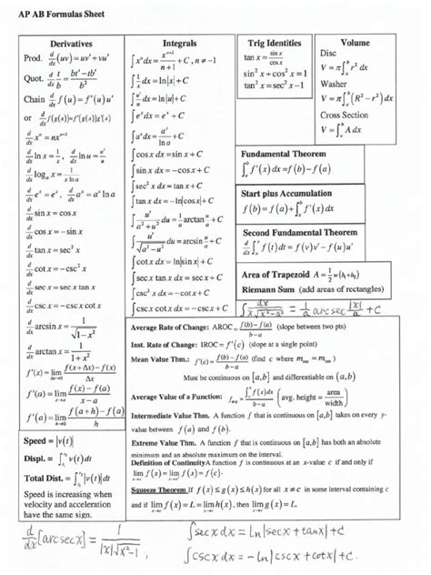 Ap Calculus AB Formula Sheet Download Printable PDF Templateroller