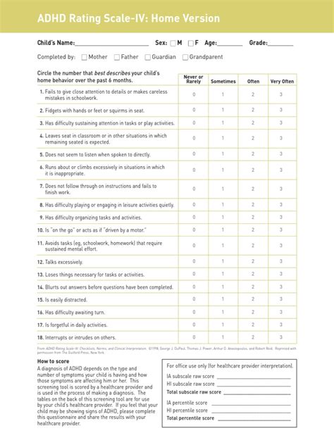 Adhd Rating Scale Iv Scoring 14 Images Adhd Rating Scale Iv For
