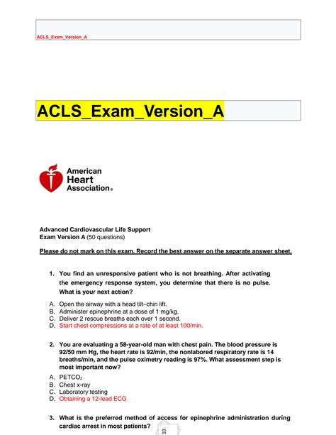 Aha Acls Exam Answer Sheet. Web initial assessment • the patient is conscious and alert. • his skin is pale, and he is diaphoretic.