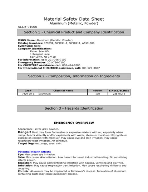 Aluminium Safety Data Sheet. 15 mg/m3 twa (total dust); Stable (under normal conditions of use and storage) conditions of reactivity: