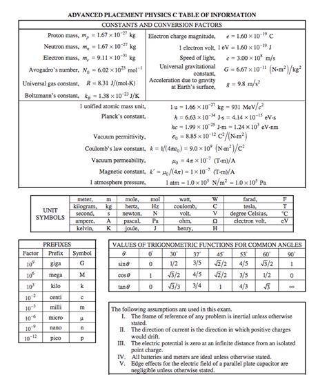 Web how to use the formulas on the ap physics c equation sheet. Web ap physics c tables and equations list advanced placement physics c table of information proton mass, mp neutron mass, m n electron mass, m e avogadro’s. The ap physics c formula. Web physics c equations sheet advanced placement physics c table of information constants and conversion factors proton mass, m p. Equations ap® physics 2 table of information constants and conversion factors proton mass, m p.
