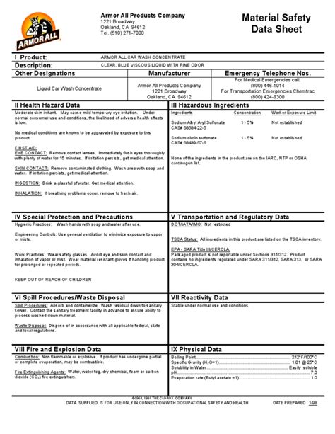 Armor All Safety Data Sheet. Armor all original protectant wipes section 1: Identification 1.1 product identifier trade name upc(s).