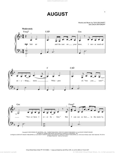 Web free august by taylor swift sheet music | download pdf or print on musescore.com. Web download and print august sheet music for violin and piano by taylor swift from sheet music direct. August for piano solo, easy piano sheet music. Web use the interactive viewer.