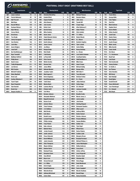 Awesemo Nfl Cheat Sheet. Web terry mcbride 2 years ago updated fantasy cruncher (fc) is a powerful tool, but it is only a tool and it will only. Ready to up your nfl dfs game?
