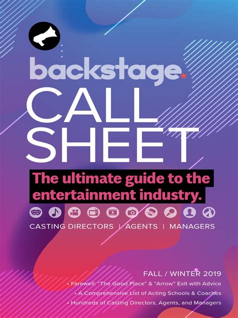 Backstage Call Sheet. Web log in or join. Get a pdf of the latest issue of call sheet, the entertainment industry's contact directory, filled with.