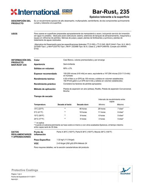 Bar Rust 235 Data Sheet. Characteristics product chemistry surface tolerant epoxy volume solids 68 voc. Intended uses for use on properly.