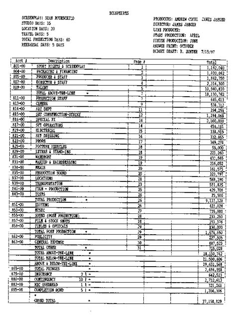 Sample Budget Top Sheet