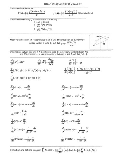 Calculus Ab Formula Sheet. Web what is the ap calculus ab formula sheet? The ap calculus ab formula sheet provides you with the complete list of formulas and.