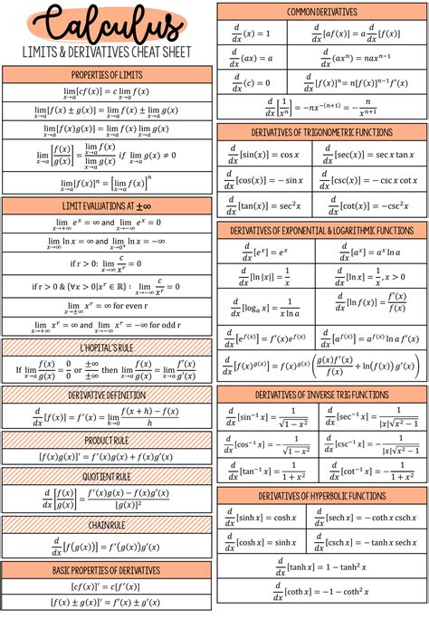 Calculus Cheat Sheet Derivatives Reduced Copy