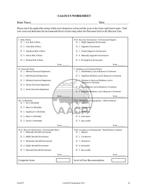 Calocus Score Sheet. Web calocus is a tool for assessment, placement and documentation of children and adolescents with complex and co.