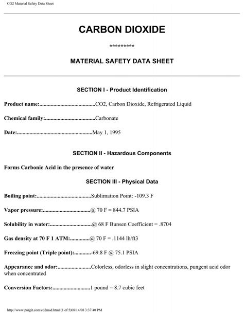 Carbon Dioxide Material Safety Data Sheet. Web details of the supplier of the safety data sheet specialty chemical products 1407 pennsylvania ave. Carbon dioxide product number :