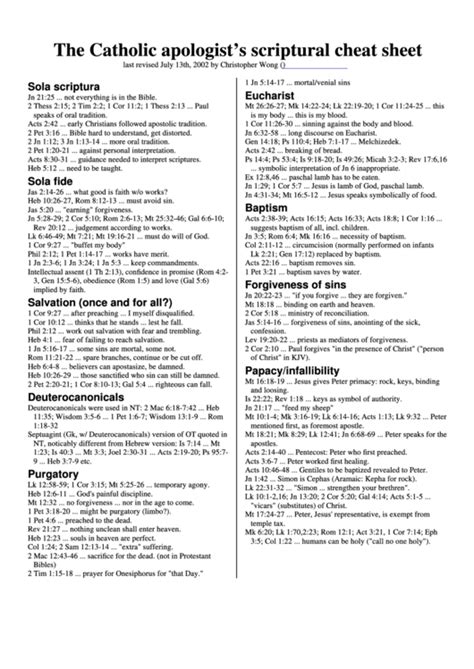 Web the catholic apologist's scriptural cheat sheet this is a collection of biblical quotes useful for catholic. Web the catholic apologist's scriptural cheat sheet this is a collection of biblical quotes useful for catholic. Web wong, christopher the catholic apologists scriptural cheat sheet. Web the catholic apologist's scriptural cheat sheet christopher wong (i thought i'd distribute this for other catholics to.