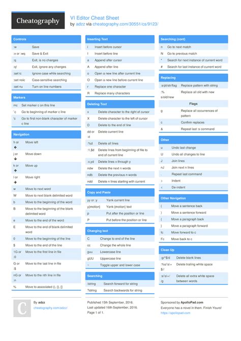 Vi filename format of vi commands: Web this cheat sheet is intended to be a quick reminder for the main concepts involved in using the command line program vim (or. Vi is one of the most commonly used editor program. Web 31 rows basic vi commands (cheat sheet) by admin. Web vi editor “cheat sheet” invoking vi: